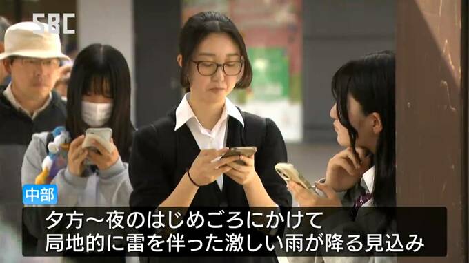 気象台によりますと、強い寒気が流れ込んでいる影響で、県内は、昼過ぎから夜のはじめ頃にかけて、大気の状態が非常に不安定になり、中部では、夕方から夜のはじめ頃にかけて、局地的に雷を伴った激しい雨が降る見込みで、気象台では、土砂災害に十分注意するよう呼びかけています。