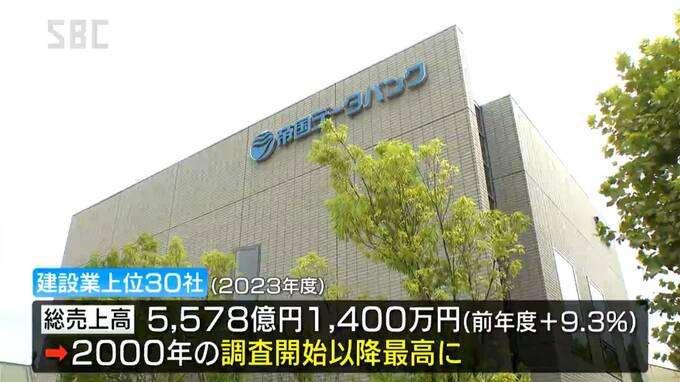 帝国データバンク長野支店によりますと、2023年度の決算を元にした、県内の建設業売上上位30社の総売上高は5578億1400万円で、前の年度を9.3%上回り、調査を始めた2000年度以降、過去最高となりました。