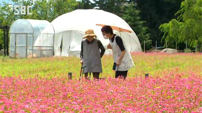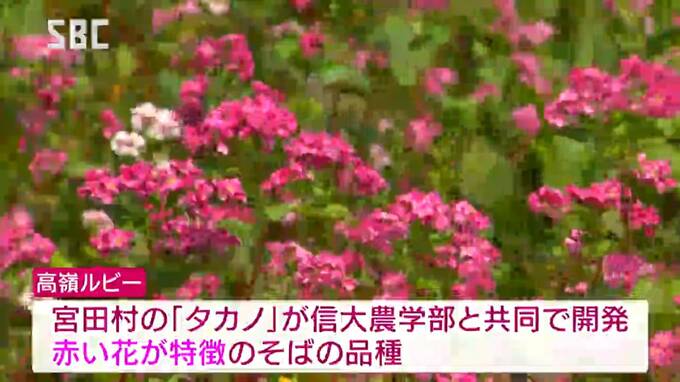 駒ヶ根市赤穂(あかほ)の「ルビーの里エクステリアガーデン」では、20アールの畑で、ソバの品種「高嶺ルビー」が栽培されています。