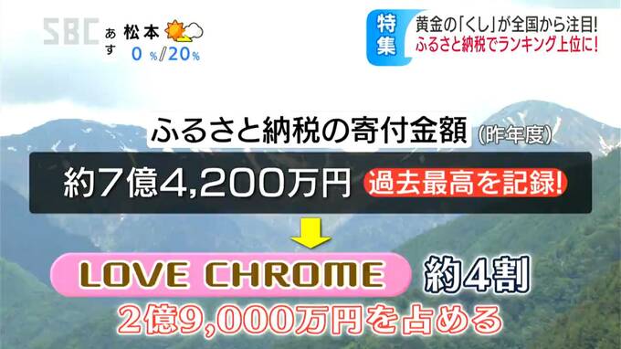 そのうち「ラブクロム」が4割ほどの2億9000万円を占めていて、民間のふるさと納税サイトでは、返礼品ランキングの上位に名を連ねています。