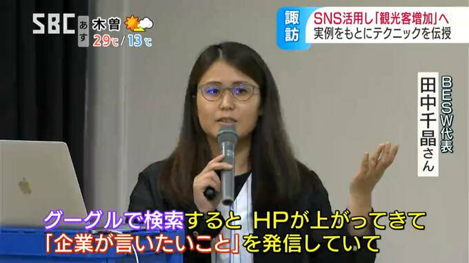 「統一感のある投稿が効果的」SNS使った誘客テクニックをプロが伝授…観光関係者を対象にセミナー「ホームページよりリアルな情報として見られる存在」 2024年6月19日(水) 18:48 国内 SNSを上手に活用して観光の誘客につなげようというセミナーが、諏訪市で開かれました。諏訪商工会議所が19日に開いたセミナーには、ホテルや旅館など観光業に従事する10人が参加。東京のwebマーケティング会社の代…