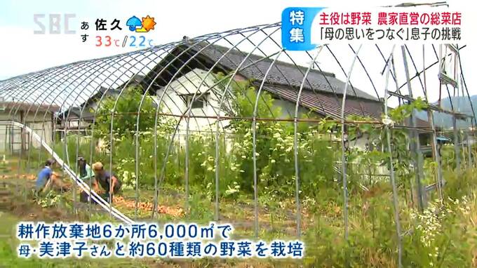 市内の耕作放棄地6か所、およそ6000平方メートルで、母親の美津子(みつこ)さんと従業員2人とともに60種類の野菜を作り、市内の直売所やインターネットなどで販売しています。