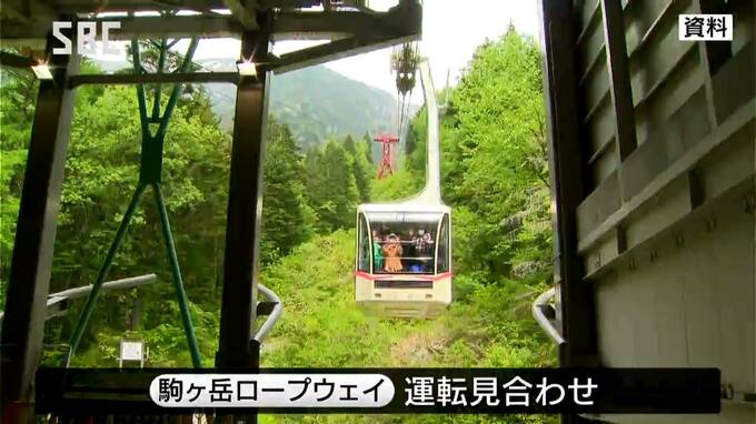 中央アルプスの駒ヶ岳ロープウェイの駅に続く県道が、土砂崩れのため通行止めとなり、ロープウェーも運休しています。