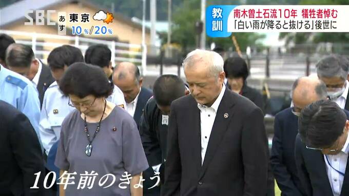 「今も空でサッカーやってる?」亡くなった中学生の友人らも献花「白い雨」が降って沢が抜けた南木曽土石流10年…防災への誓いも新たに 2024年7月9日(火) 20:00 国内 長野県南木曽町で発生した土石流災害から9日で10年が経ちました。現場に建つ石碑の前では、関係者などが亡くなった中学生を悼みました。「黙とう」向井裕明町長:「10年前のきょう7月9日は夏らしい暑い日でした。3…
