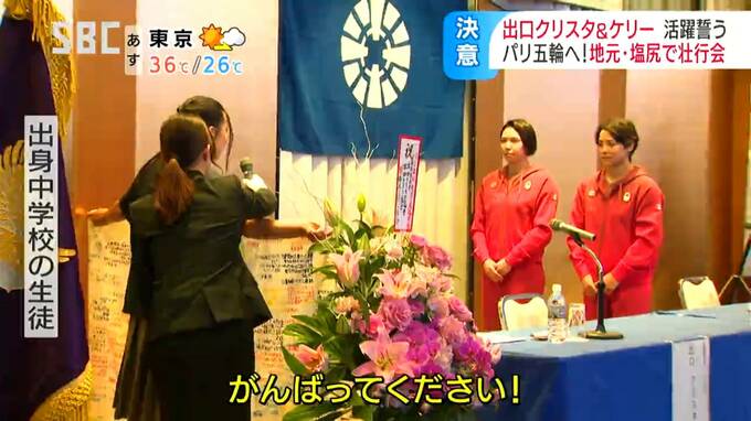 地元・塩尻市では6日、パリオリンピックに出場するクリスタ選手とケリー選手を激励しようと壮行会が開かれました。