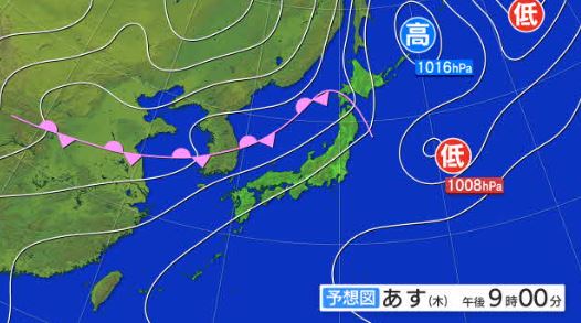 前線は、17日東日本から北日本に北上し、前線に向かって温かく湿った空気が流れ込み、関東甲信地方では17日夜遅くにかけて大気の状態が不安定になる見込みです。