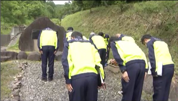 7月19日を独自の「防災の日」と定めている岡谷市では、早出一真(そうで・かずま)市長と市の職員が「土砂災害伝承之碑」を訪れ犠牲者に黙とうを捧げました。