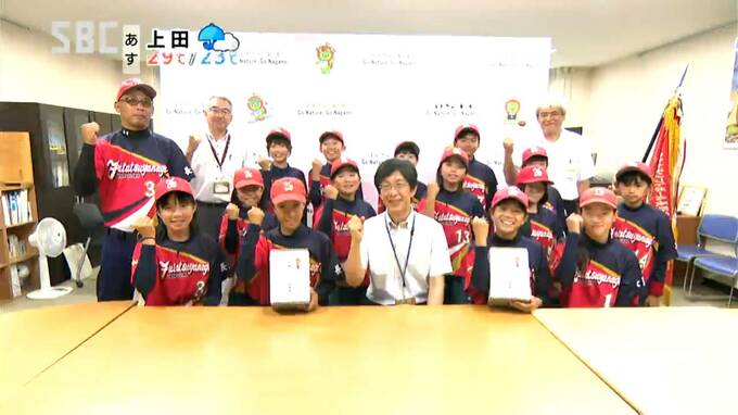 少女ソフトボールチームが初の全国大会へ!「最後まで諦めずに勝利を目指す…」大会前に活躍誓う 2024年7月23日(火) 18:30 国内 ソフトボールの全国大会に初出場する長野市の小学生女子チームが「最後まであきらめずに勝利を目指す」と活躍を誓いました。そろいのユニフォームで23日県庁を訪れたのは、長野市篠ノ井地区の「二ツ柳柳沢少女ソフ…