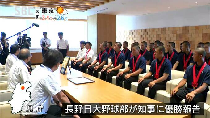 県庁を訪れたのは、長野日大野球部の選手や監督など28人で、知事に優勝を報告しました。