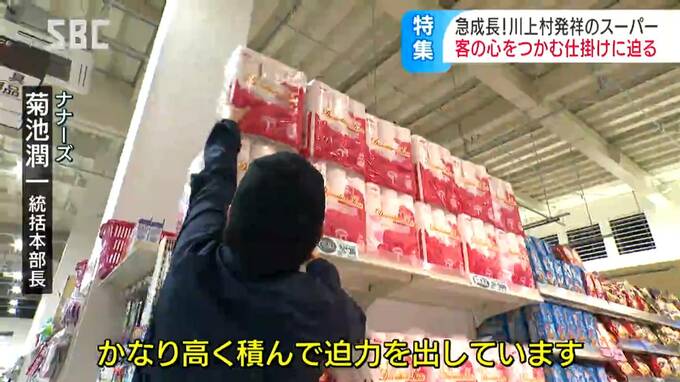 「かなり高く積んで迫力を出しています。ティッシュ、トイレットペーパー、オムツは、うちがかなり安いと思います」