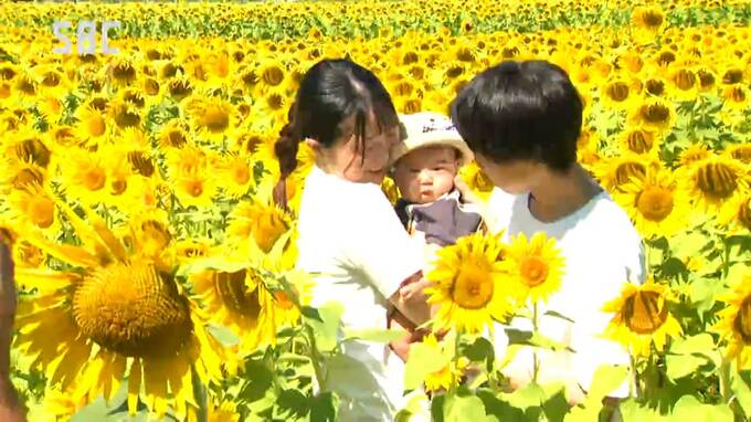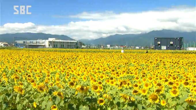 長野県松本市の畑で13万本のヒマワリが見頃を迎えています。