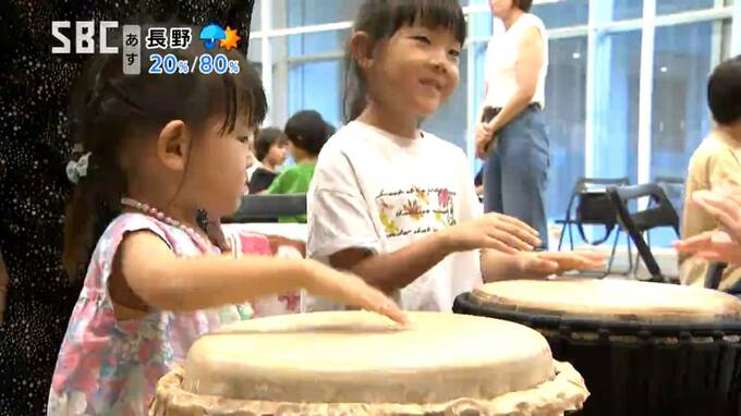 子どもたちに音楽に親しんでもらおうと、北沢さんが講師を務めるワークショップが17日、長野市芸術館で開かれ、12組の親子が参加しました。