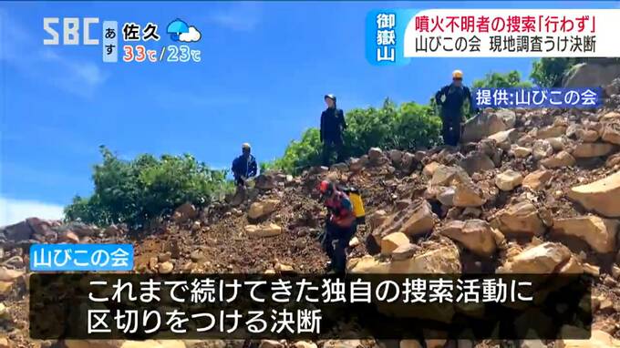 行方不明5人の捜索に区切り…戦後最悪58人死亡の御嶽山噴火災害「10年経過し地形変化で発見困難に」遺族らの「山びこの会」が事前調査の結果受け判断 2024年8月19日(月) 18:26 国内 御嶽山噴火災害の遺族などでつくる「山びこの会」は、7月の現地調査の結果を受けて、会としては行方不明者の捜索を行わないことを決めました。山びこの会は7月29日、民間の山岳捜索会社とともに、行方不明者が流さ…