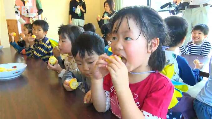 園児たちは採れたてを味わったほか、持ち帰っておやつの時間にみんなで食べるということです。