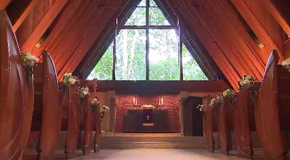 森の中にひっそりとたたずむ軽井沢高原教会、大正時代に建てられた歴史ある建物です。