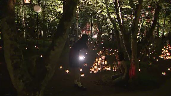 スタッフが準備するのはランタンです。1つ1つあかりを灯しながら木の枝に取り付けていきます。