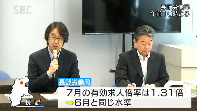 長野労働局によりますと、県内の7月の有効求人倍率は、前の月から横ばいの1.31倍でした。