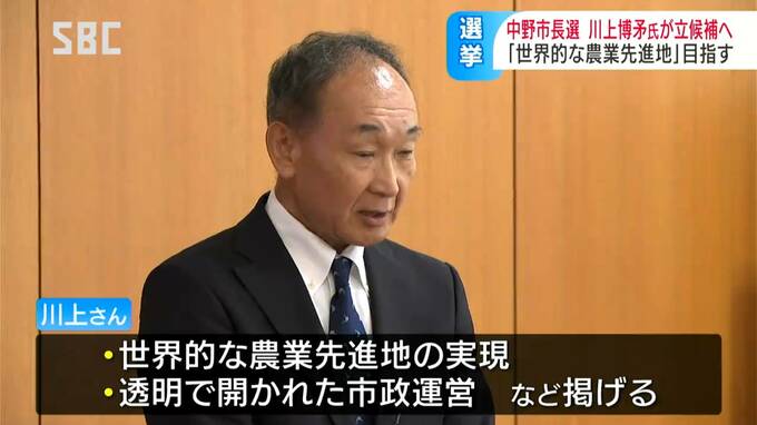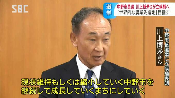 任期満了に伴う11月の中野市長選挙に、無所属の新人で元会社役員の川上博矛(かわかみ・ひろむ)さんが2日、立候補を表明しました。