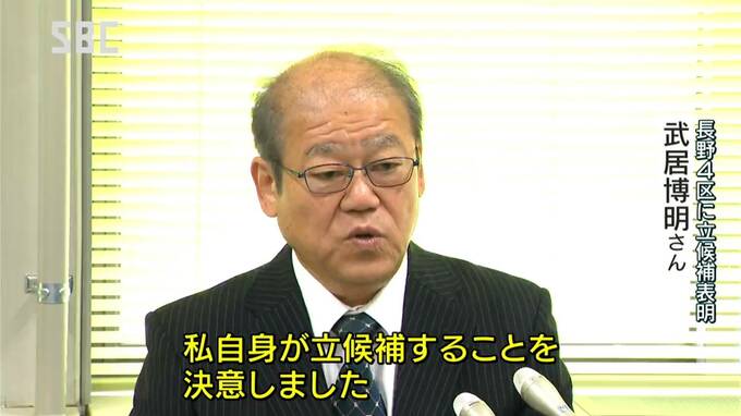 15日に公示される衆議院選挙の長野4区に、元塩尻市議で立憲民主党の武居博明(たけい・ひろあき)さんが3日、立候補を表明しました。