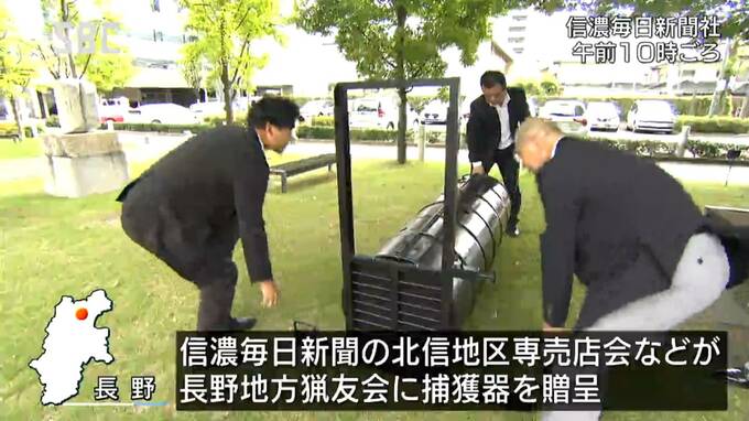 長野地域の猟友会に捕獲器を贈ったのは、信濃毎日新聞の北信地区専売店会などです。