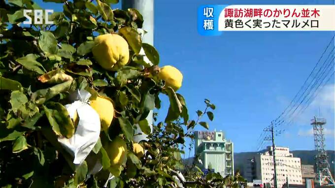 秋の青空に黄色の実が映えて…諏訪湖畔に850メートル続く「カリン並木」でマルメロの収穫、ジャムなどへの加工用として販売へ 2024年10月15日(火) 19:00 国内 諏訪湖畔の「かりん並木」で15日、黄色く色づいた実の収穫作業が行われました。諏訪市の諏訪湖畔には850メートルにわたってカリンに似たマルメロの木が120本ほど植えられていて、地元では「かりん並木」として親し…