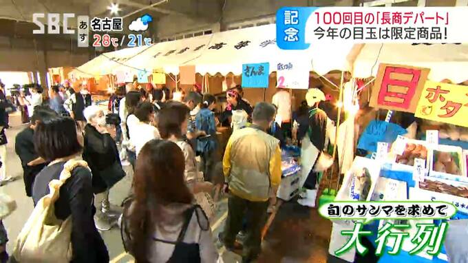 毎年人気の鮮魚コーナーでは、旬のサンマを求めて大行列ができていました。