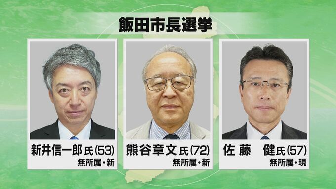 現職と新人あわせて3人の争いとなった飯田市長選挙は、20日、投票が行われています。