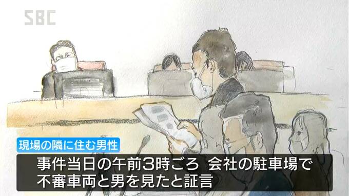 男性は検察側の質問で、事件当日の午前3時ごろ、会社の駐車場で不審な車と男を見たと証言。