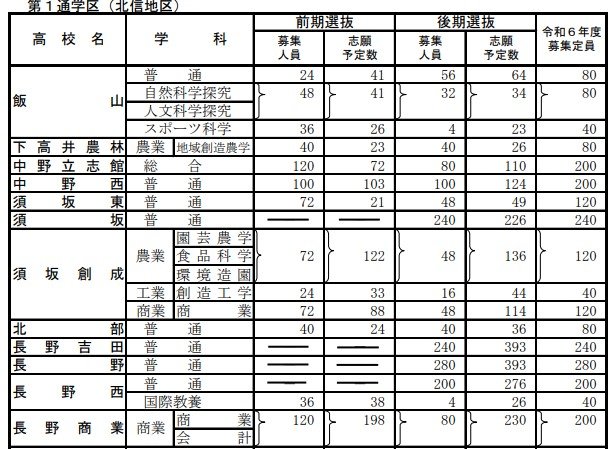 3. 【全校一覧掲載】野沢北理数科が10倍、伊那北理数科9.75倍【2025年度長野県高校入試志願者第1回調査】全日制前期選抜1.14倍、後期選抜は1.44倍に