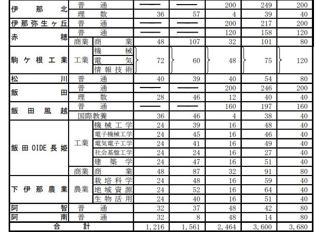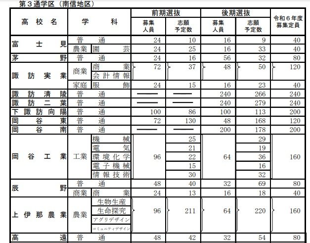3. 【全校一覧掲載】野沢北理数科が10倍、伊那北理数科9.75倍【2025年度長野県高校入試志願者第1回調査】全日制前期選抜1.14倍、後期選抜は1.44倍に