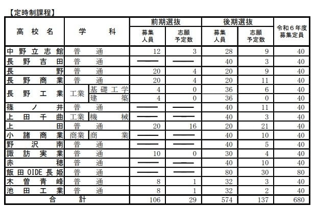 【全校一覧掲載】野沢北理数科が10倍、伊那北理数科9.75倍【2025年度長野県高校入試志願者第1回調査】全日制前期選抜1.14倍、後期選抜は1.44倍に 2024年10月25日(金) 17:00 国内