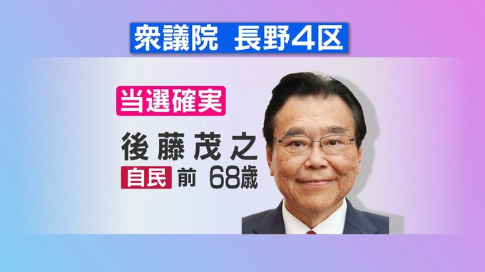 【速報】長野4区で後藤茂之氏(自民・前)が当選確実 2024年10月27日(日) 20:01 国内 衆院選信毎開票速報~SBC~ 衆院選の長野4区で、自民党の前職 後藤茂之さんの8回目の当選が確実になりました。