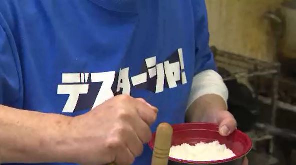 店主は、牧選手がホームランを放った後に、ファンに向かって言う「デスターシャ!」という言葉が胸に書かれたTシャツを着て厨房に立ちました。
