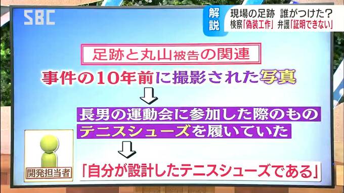 検察側は、「金目当ての窃盗犯が土足で侵入した」と見せかけるため、丸山被告がテニスシューズを履いて、足跡をつけたと主張。