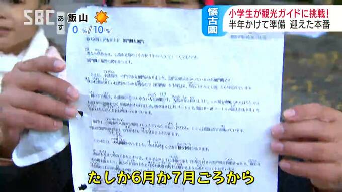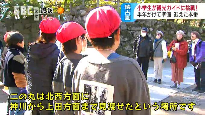 紅葉も色づき始めた小諸市の懐古園で8日、地元の子どもたちが観光ガイドに挑戦しました。