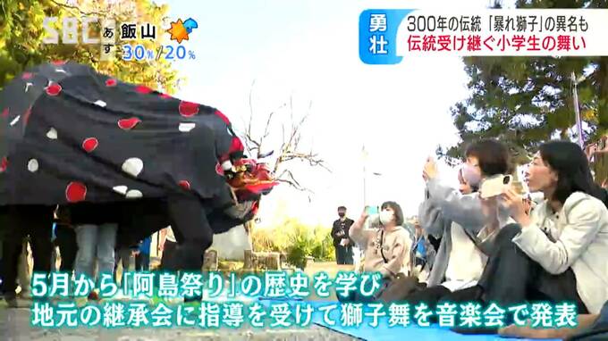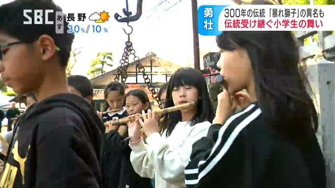 300年以上続く「暴れ獅子」とも呼ばれる獅子舞の伝統を受け継ごうと、長野県喬木村の小学生が12日、練習の成果を披露しました。