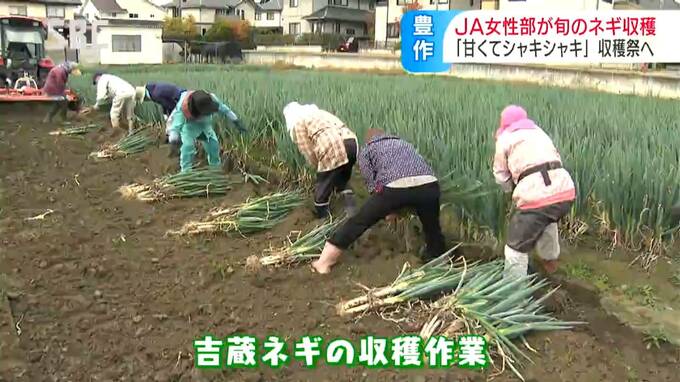 安曇野市でJA女性部のメンバーが13日、丹精込めて育ててきたネギを収穫しました。