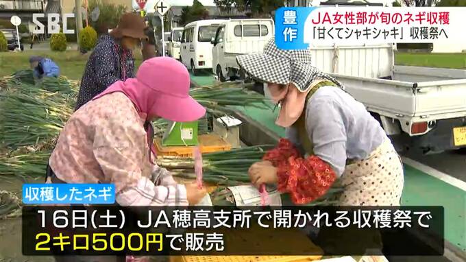 収穫したネギは16日にJA穂高支所で開かれる収穫祭で、2キロ500円で販売されるということです。