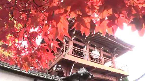 120年前に植えられたカエデが今年も真っ赤に色づいています。