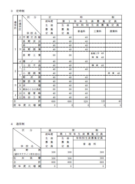 【全校一覧掲載】2025年度の公立高校の募集定員640人の減 上田、松本深志、飯山、長野東など全日制は16校で16学級減に