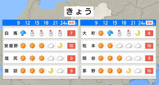 長野県内は、18日の夕方から19日の明け方にかけて、北部を中心に雪となるところがある見込みです。