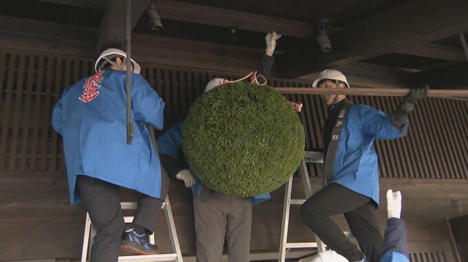 新酒の初出荷を迎えた諏訪市の老舗酒蔵・宮坂醸造では23日、敷地内の神社で酒造りの安全と商売繁盛を祈願し、店の軒先に真新しい「杉玉」を飾りました。