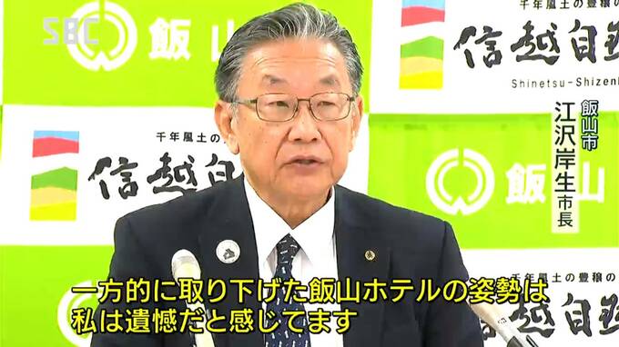 「一方的に取り下げた飯山ホテルの姿勢は私は遺憾だと感じてます」