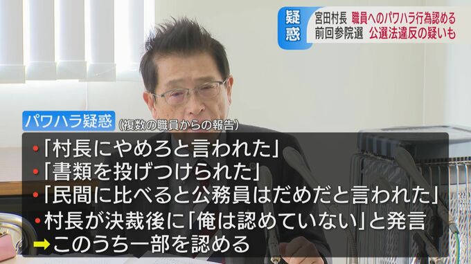 疑惑となっているのは、複数の職員から「村長に辞めろと言われた」、「書類を投げつけられた」、「民間企業に比べると公務員はだめだ」と言われたり、村長自らが決裁したにもかかわらず「俺は認めていない」などと発言したという内容で、村長はこのうちの一部を認めたということです。