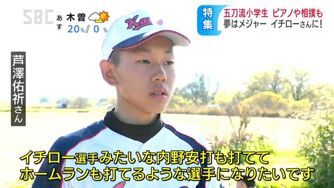 「イチロー選手みたいな内野安打も打ててホームランも打てるような選手になりたいです」