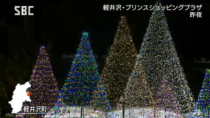 長野県軽井沢町の商業施設に冬の夜を彩るイルミネーションが設置され、訪れた人を楽しませています。