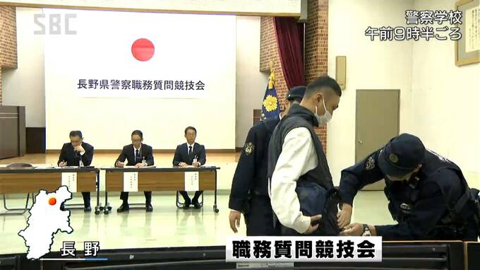 長野市の警察学校で12日に開かれた県警の職務質問競技会。