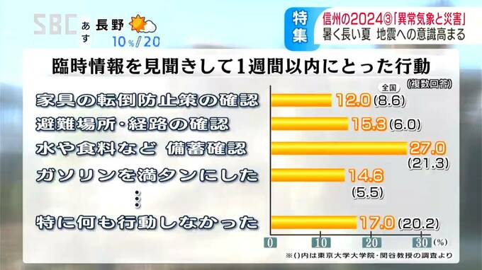 避難場所や経路、備蓄を確認した人は全国よりも高い水準に。