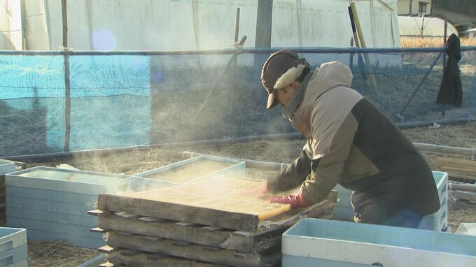 寒さが一番の恵み「寒天作り」朝晩の冷え込みと日中の晴天続き順調な滑り出し 白い息吐きながら天出し作業 2024年12月20日(金) 12:30 国内 茅野市では、厳しい寒さを生かした寒天作りが行われています。茅野市宮川の五味喜一(ごみ・きいち)商店では、12月7日から寒天作りが始まっていて、20日も担当者が白い息を吐きながら、寒天のもととなる「ところ…