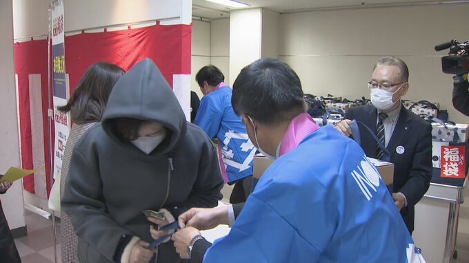 お目当ては毎年人気の100個限定の福袋で、先着順で整理券が配られました。
